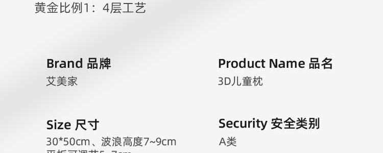 商品名称:艾美家 3D分压调节枕 30*50cm(高5-7cm)灰色