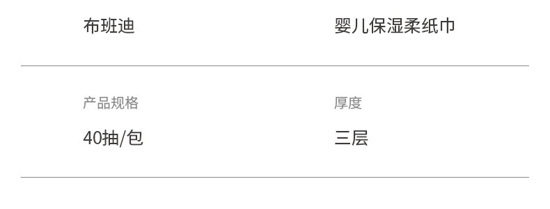 商品名称:布班迪 婴儿保湿柔纸巾 40抽*50包(共5提)
