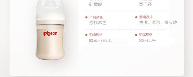 商品名称:日本 贝亲(Pegion)“自然实感Ⅲ”宽口径PPSU奶瓶 L号奶嘴 330ml AA193