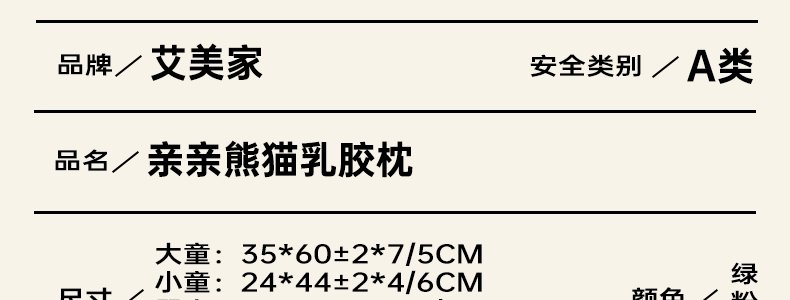 商品名称:艾美家 亲亲熊猫乳胶枕-大童(7-16岁)粉色
