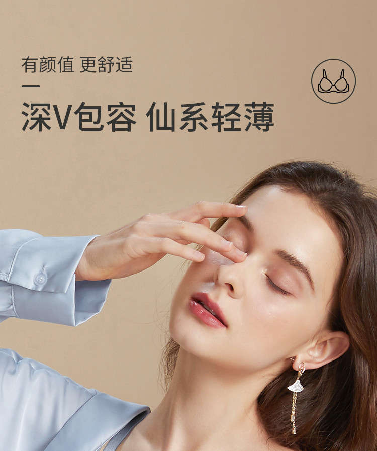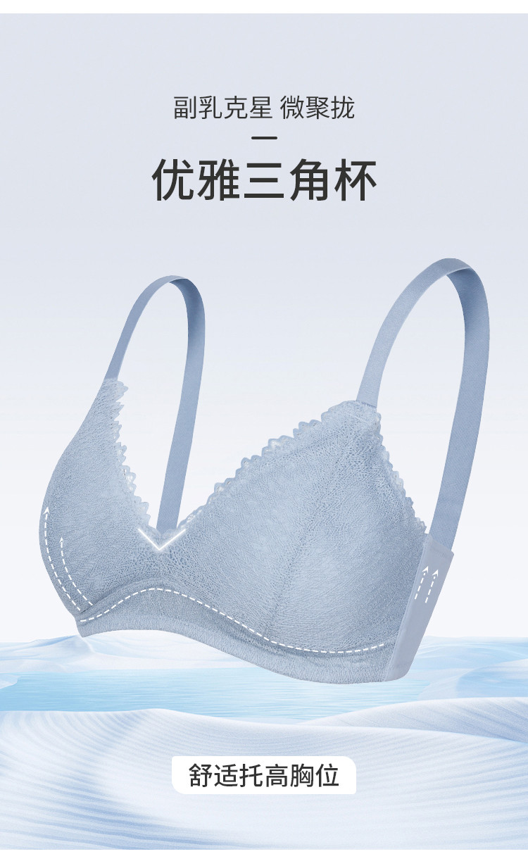 商品名称:【优雅法式】三角杯无钢圈内衣夏季薄款女小胸聚拢文胸罩专柜同款 283083