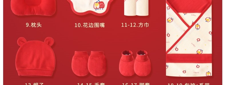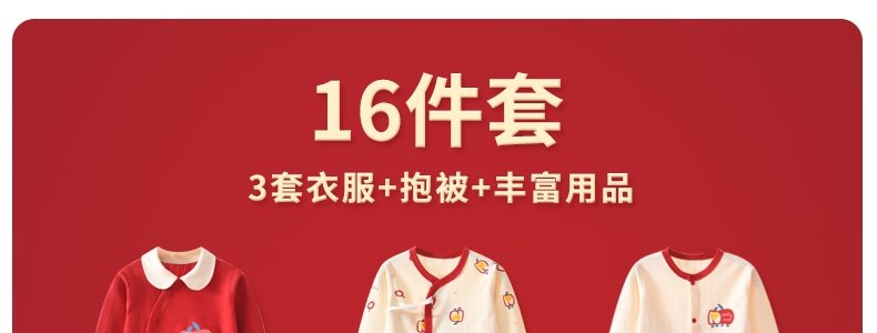商品名称:班杰威尔 新生儿礼盒婴儿衣服套装 59cm 19件套 平安果C