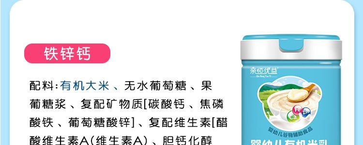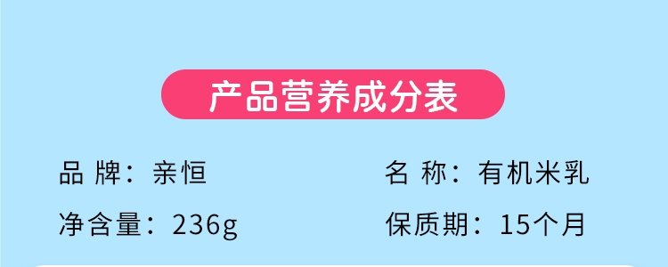 商品名称:亲恒 有机米粉 铁锌钙 236g/罐
