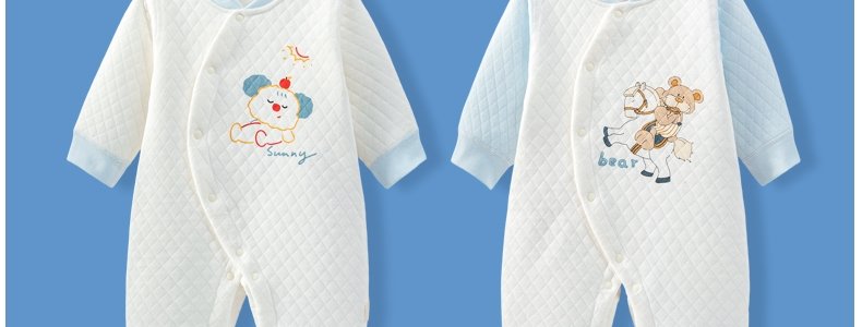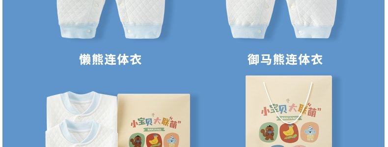 商品名称:班杰威尔 婴儿夹棉连体衣冬季宝宝衣服 90cm 哈衣加厚蓝企鹅+加厚卡特熊2件套装