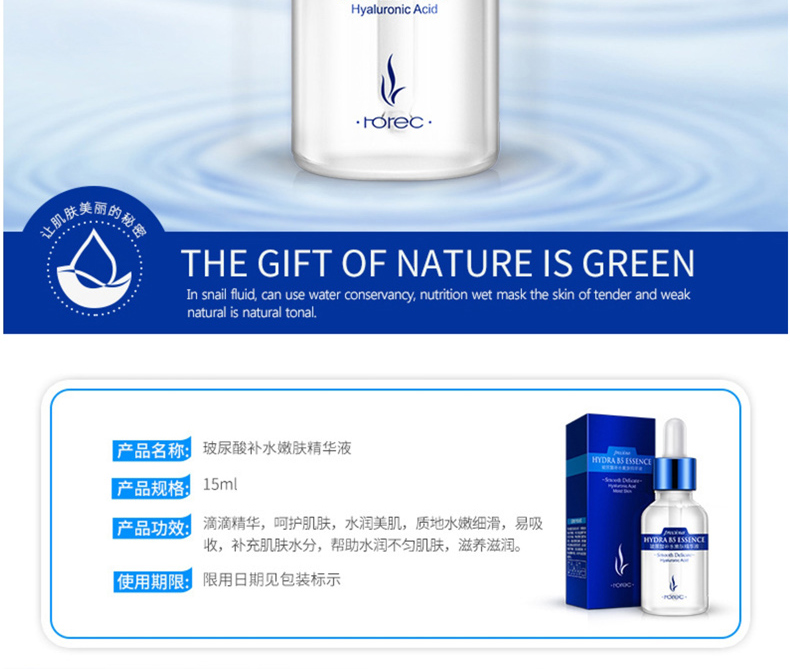 商品名称:韩婵玻尿酸补水嫩肤精华液 水润保湿嫩滑 15ml