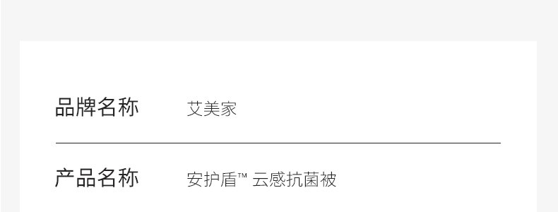 商品名称:艾美家 安护盾TM 云感抗菌-冬被被芯 5.9斤 白色 (200cm*230cm)