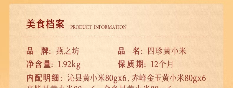 商品名称:燕之坊 四珍黄小米礼盒1.92kg/盒