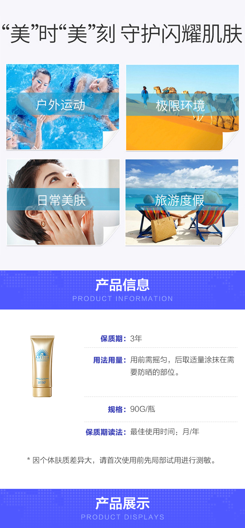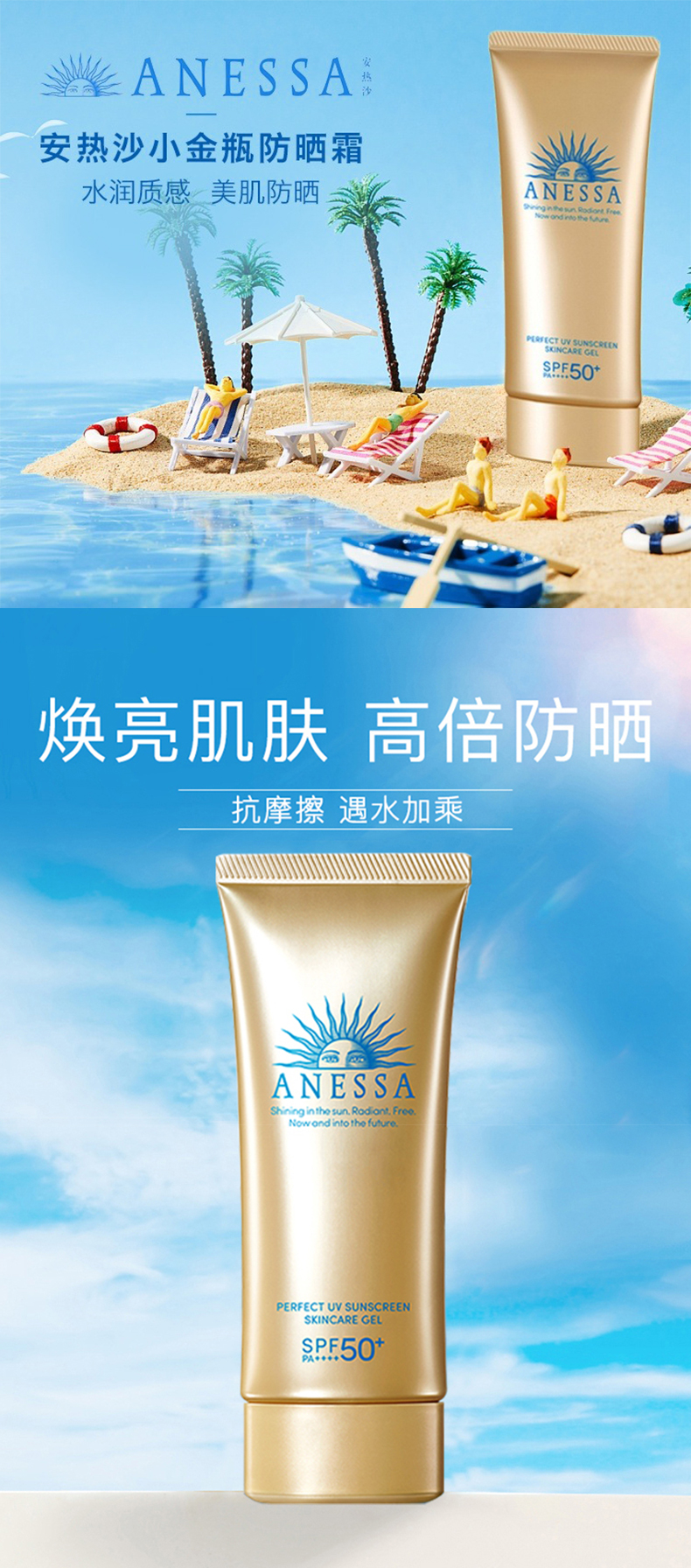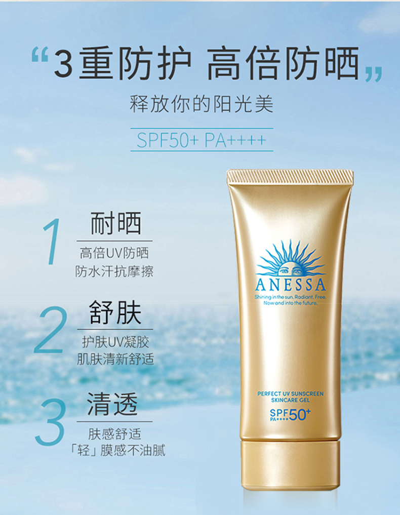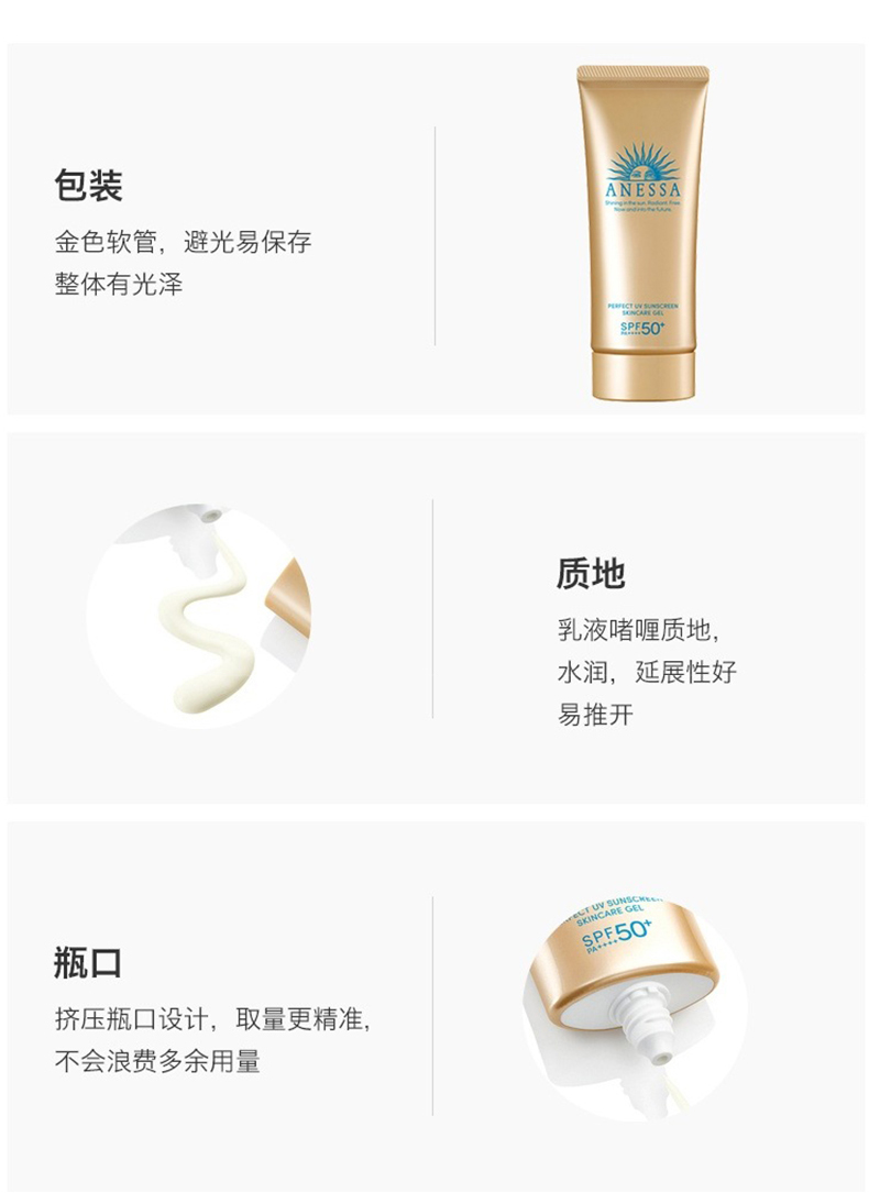 商品名称:Anessa/安耐晒 小金瓶 脸部防晒啫喱面部专用防晒霜防水汗 90g
