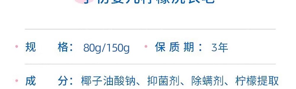 商品名称:子初 婴儿柠檬洗衣皂 80g/块*3块