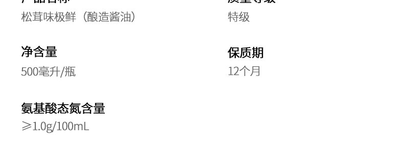商品名称:松鲜鲜 松茸味极鲜 500ml*2瓶
