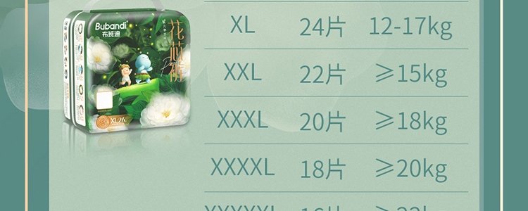 商品名称:布班迪 花芯裤拉拉裤 2XL 22片 (推荐15KG以上)