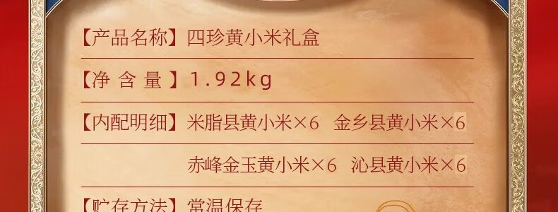 商品名称:燕之坊 四珍黄小米礼盒铁盒2.88kg/盒
