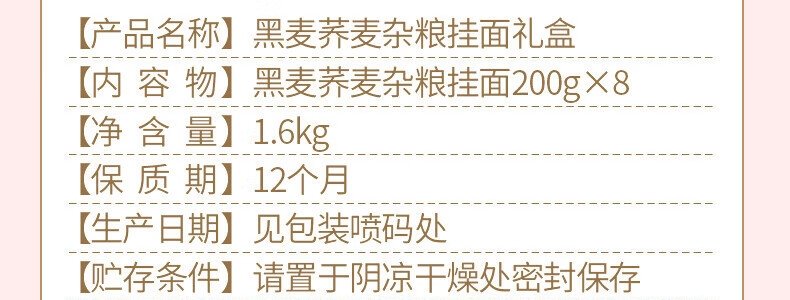 商品名称:燕之坊 黑麦荞麦杂粮挂面礼盒1.6kg/盒