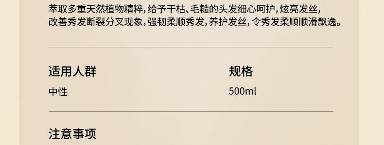 商品名称:菲小主 经典养发防断洗发水 500ml/瓶