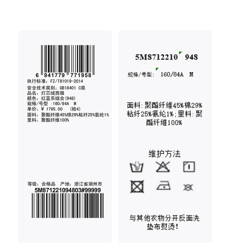 商品名称:秋西服宽松灯芯绒H型西装女 234059