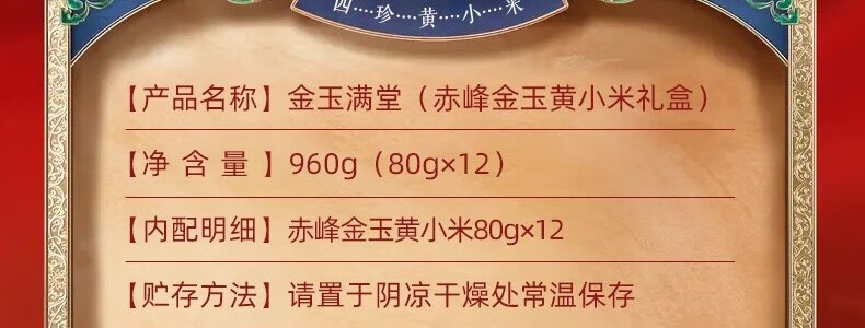 商品名称:燕之坊 金玉满堂礼盒 960g/盒(赤峰金玉黄小米80g*12)