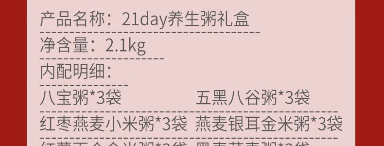 商品名称:燕之坊 21day养生粥礼盒 2.1kg/盒