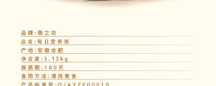 商品名称:燕之坊 每日营养粥 3.15kg/盒