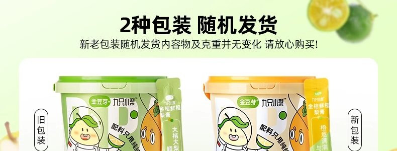 商品名称:金豆芽 九只小梨 金桔鲜橙膏 210g(10g*21条)/桶