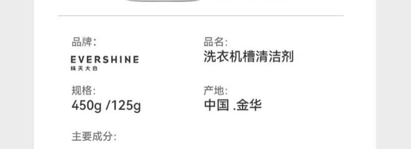 商品名称:晴天大白(evershine)洗衣机槽清洁剂(桶装)450g