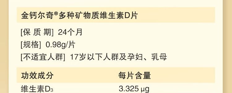 商品名称:金钙尔奇 多种矿物质维生素D片 60片【新】
