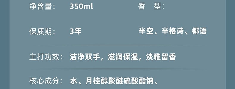 商品名称:晴天大白(evershine)护手洗手液 350ml*3瓶(半格诗+半空+椰语)