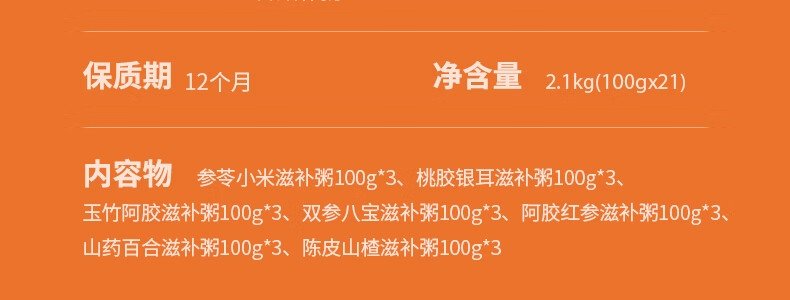 商品名称:燕之坊 21日装滋补粥礼盒 2.1kg/盒