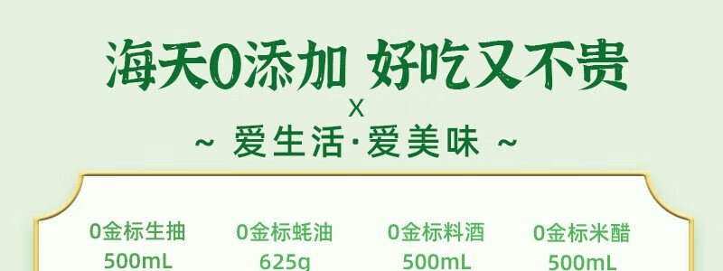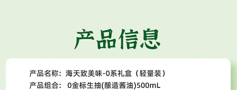 商品名称:海天 致美味0添加调味品礼盒套装 (轻量装)(中华老字号)