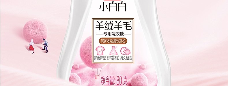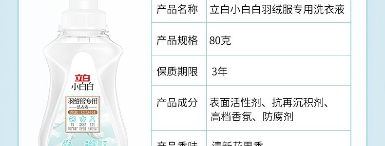 商品名称:立白 小白白羊绒羊毛80g*1瓶+小白白羽绒服洗衣液80g*1瓶+至彩炫白液80g*1瓶