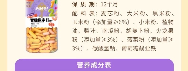商品名称:心迪妈妈智趣饼干数字饼干130g