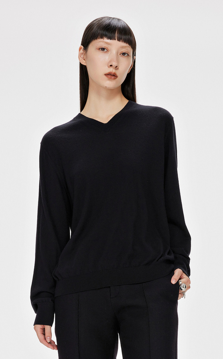 商品名称:冬羊绒衫宽松套头V领上衣女 276619