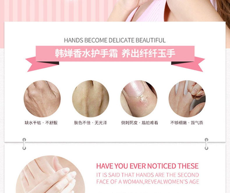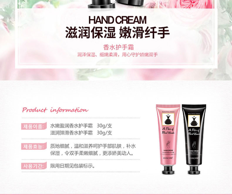 商品名称:韩婵滋润弹滑/水嫩盈润香水护手霜 保湿嫩滑水润 手部护理 30g
