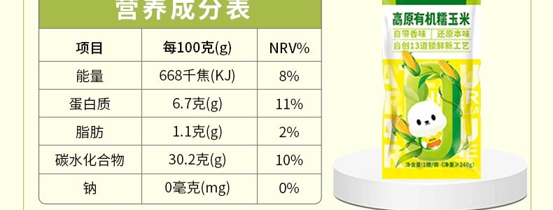 商品名称:灶小美 有机黄糯10棒礼盒(16-18cm,260-320g)