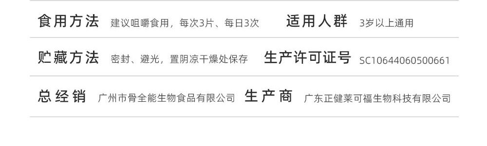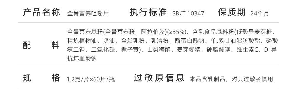 商品名称:骨全能 全骨营养咀嚼片 60片*4瓶 盒装