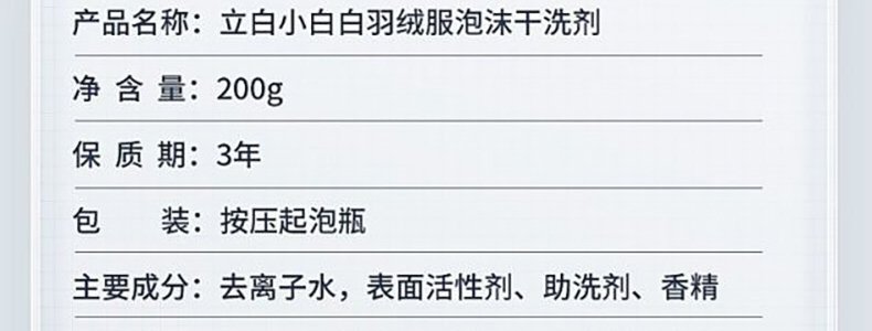 商品名称:立白 小白白羽绒服干洗剂 200g*1瓶