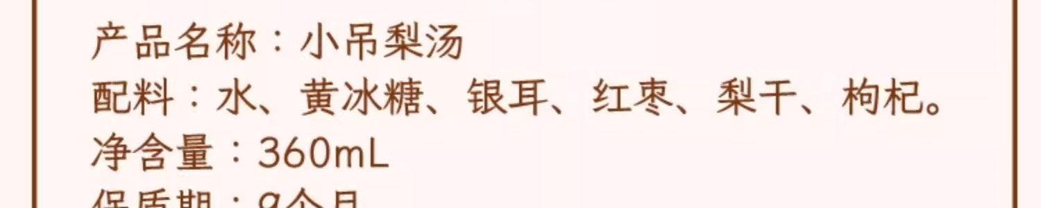 商品名称:乐源 熬煮小吊梨汤 360ml*6瓶