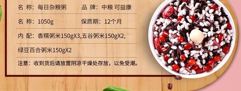商品名称:可益康 每日杂粮粥 150g*7袋/箱