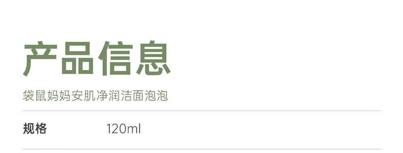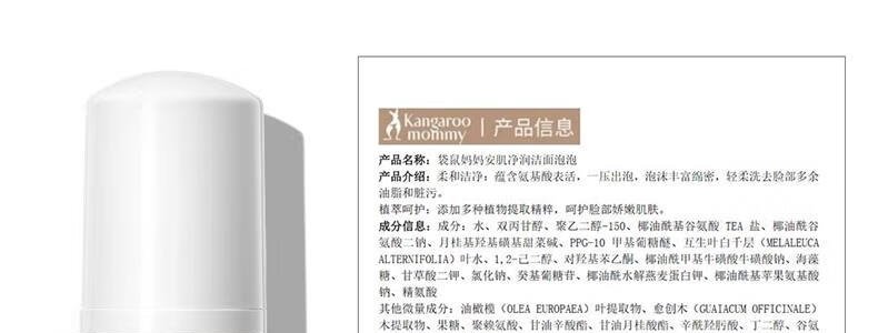 商品名称:袋鼠妈妈 安肌净润洁面泡泡 120ml 6岁+