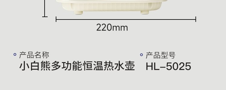 商品名称:小白熊 多功能新款恒温热水壶 陶晶款 HL-5025
