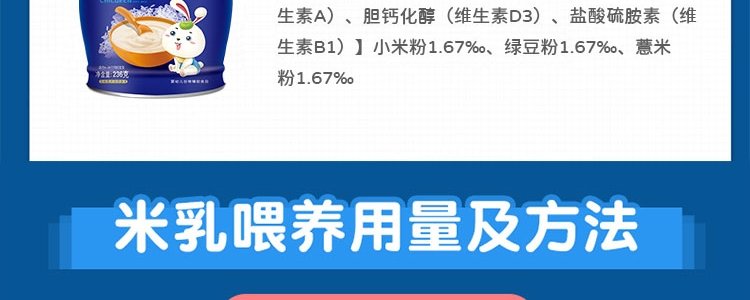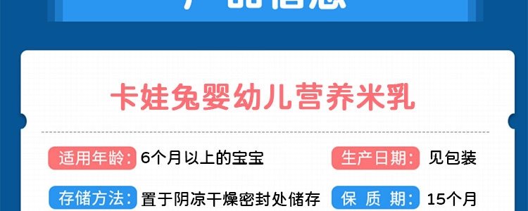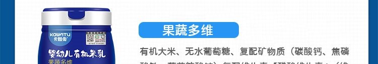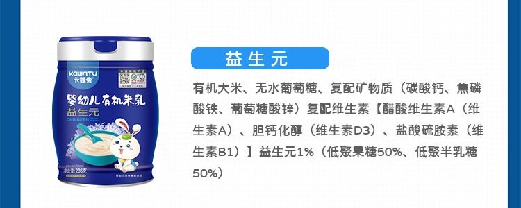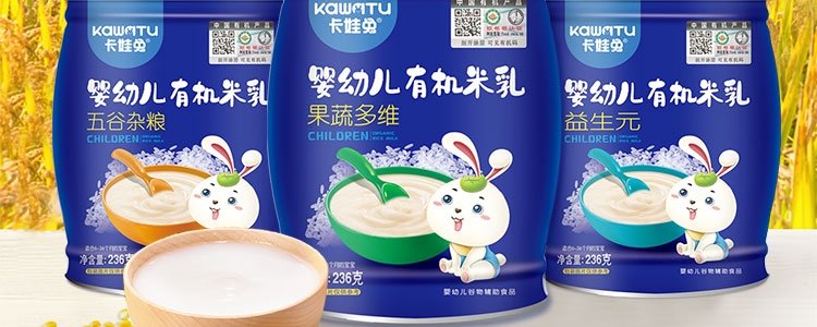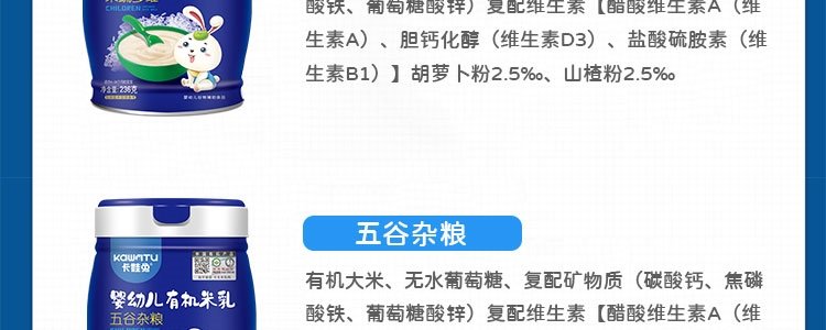 商品名称:卡娃兔 婴幼儿有机米乳 五谷杂粮 236g/罐