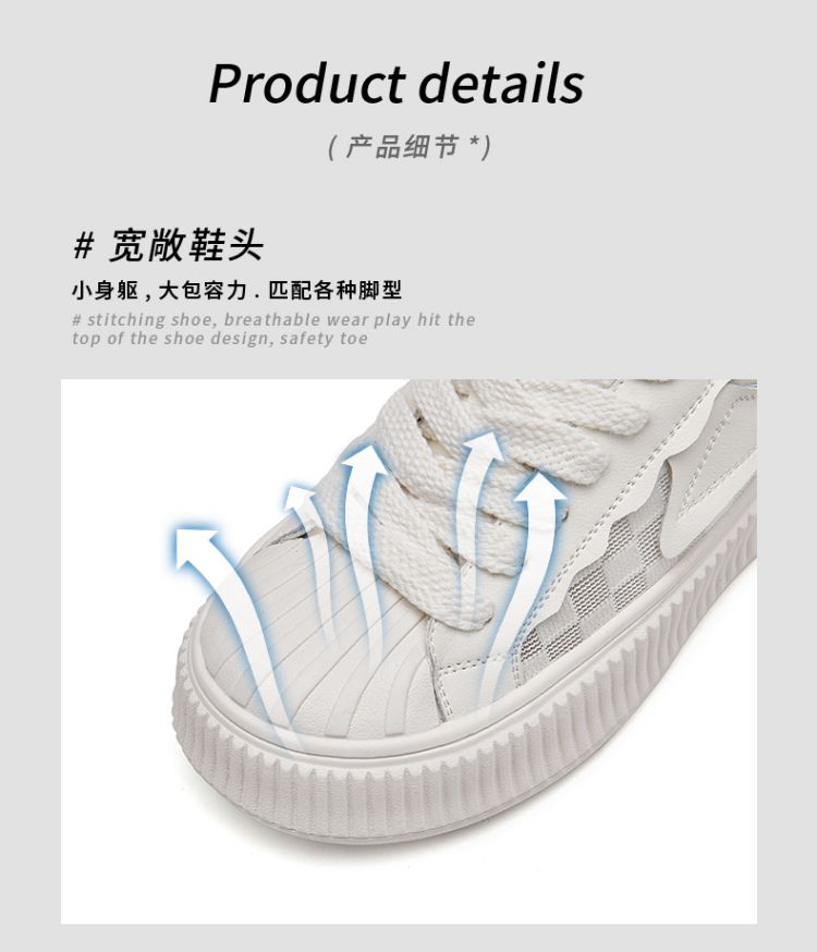 商品名称:春夏透气网面贝壳鞋女休闲运动鞋日常通勤板鞋厚底增高女鞋 749143