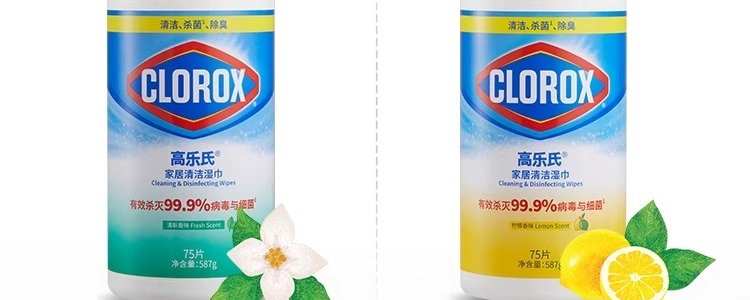 高乐氏 桶装湿巾0酒精消毒除菌清洁湿巾 - 柠檬香型 75片/桶*2桶
