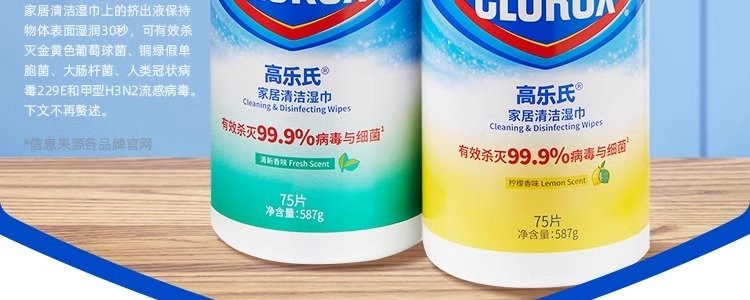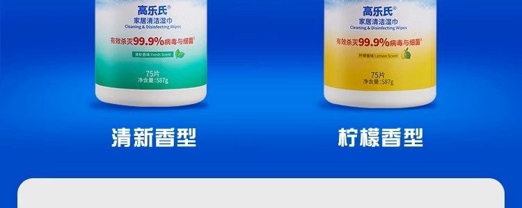 商品名称:高乐氏 桶装湿巾0酒精消毒除菌清洁湿巾 - 柠檬香型 75片/桶*2桶