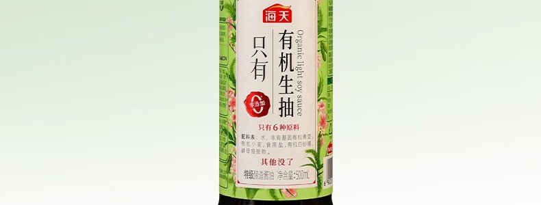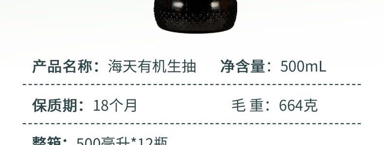 商品名称:海天 有机生抽 500ml/瓶(中华老字号)