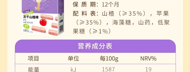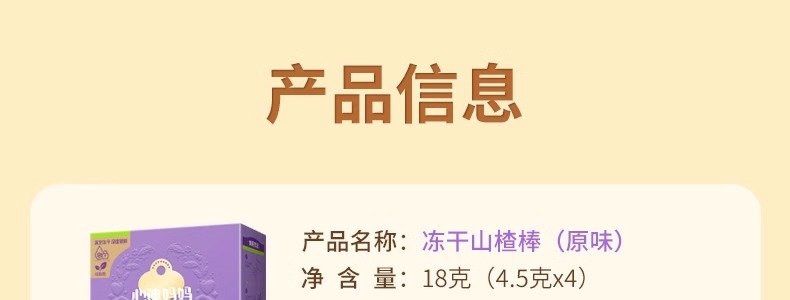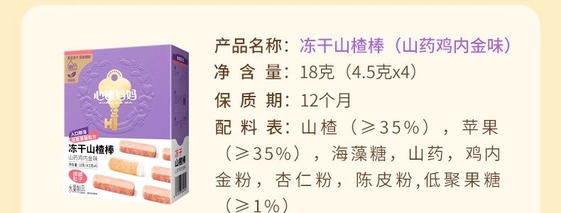 商品名称:心迪妈妈 冻干山楂棒山药鸡内金味 18g