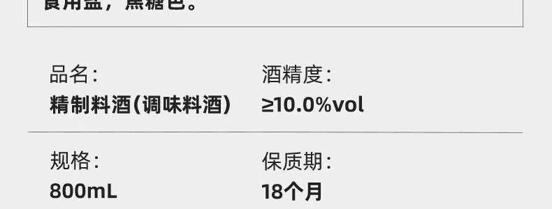 商品名称:海天 精制料酒 800ml*2瓶(中华老字号)