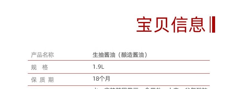 商品名称:海天 生抽酱油 超值装 1900ml