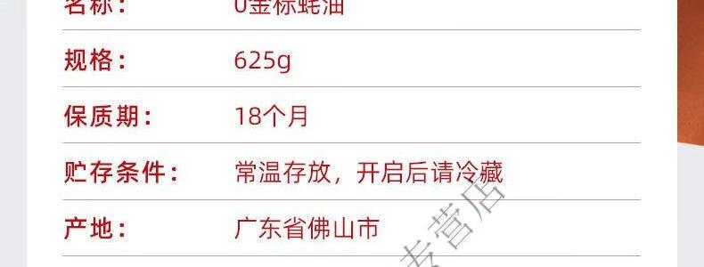 商品名称:海天 0金标蚝油 625g*2瓶(中华老字号)