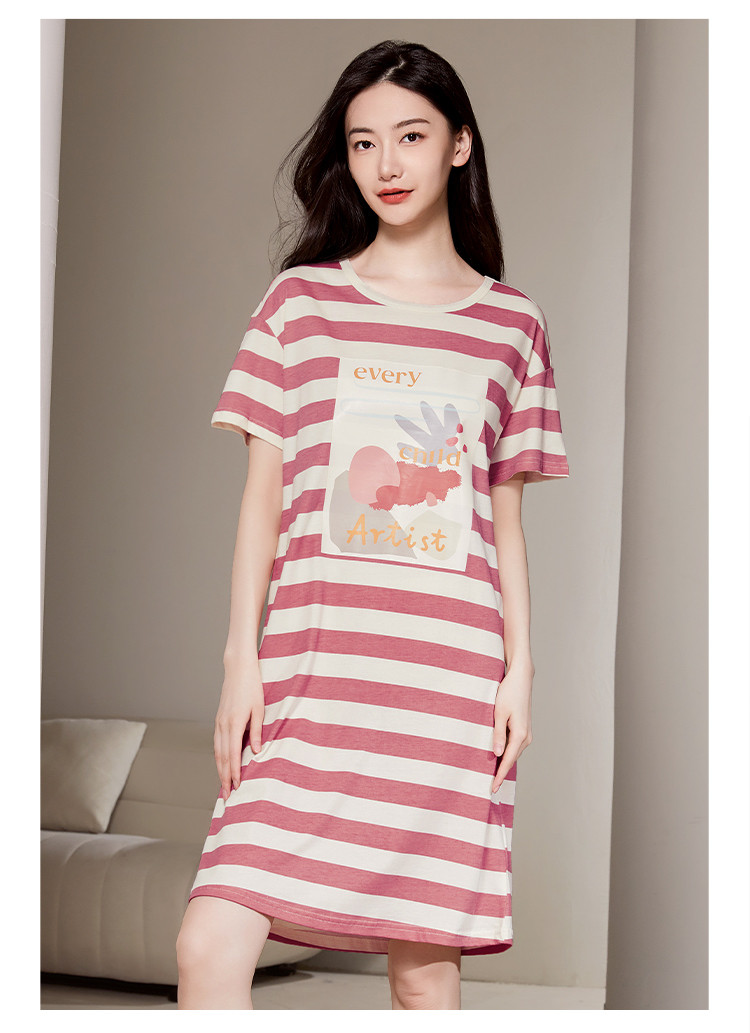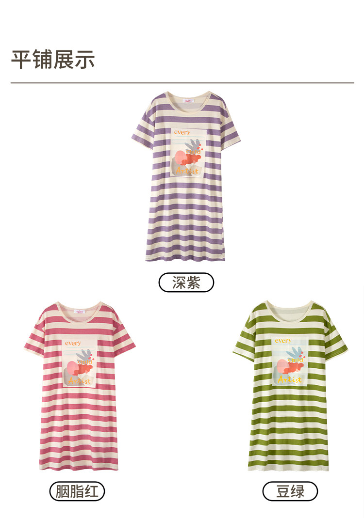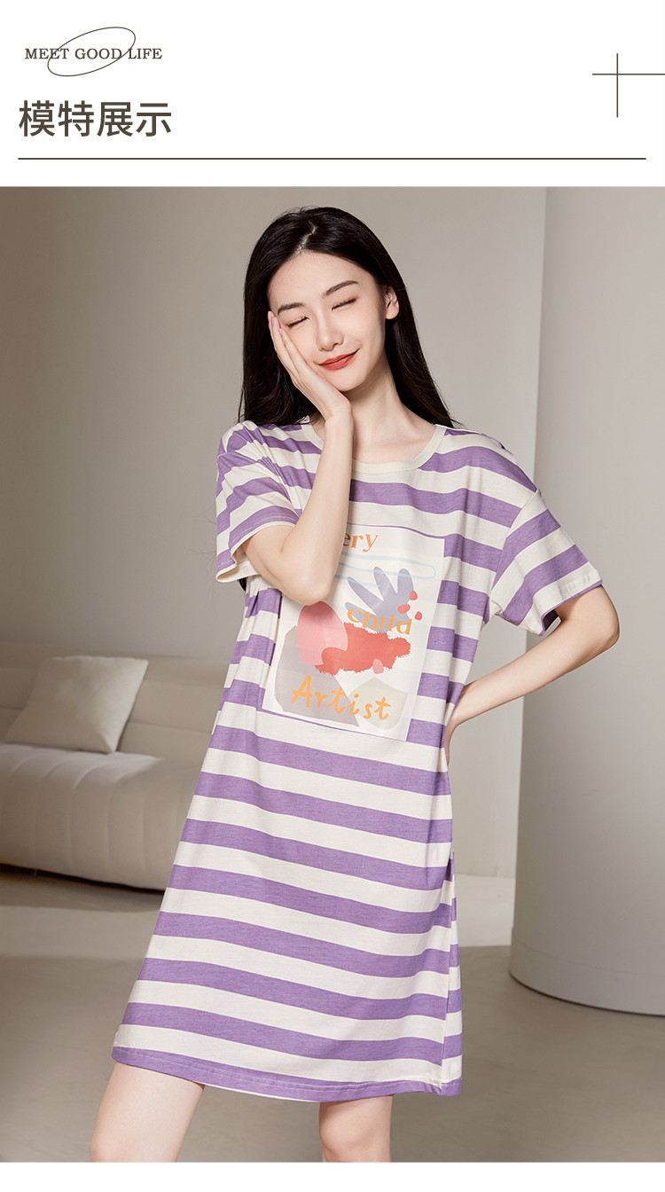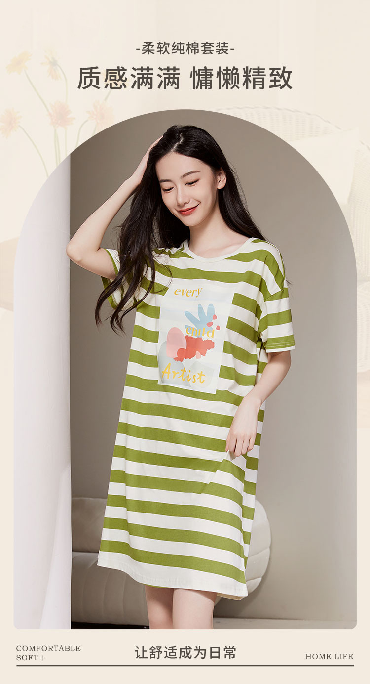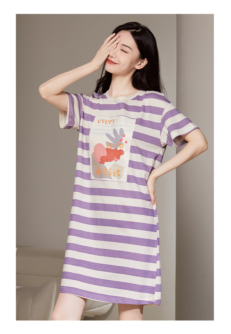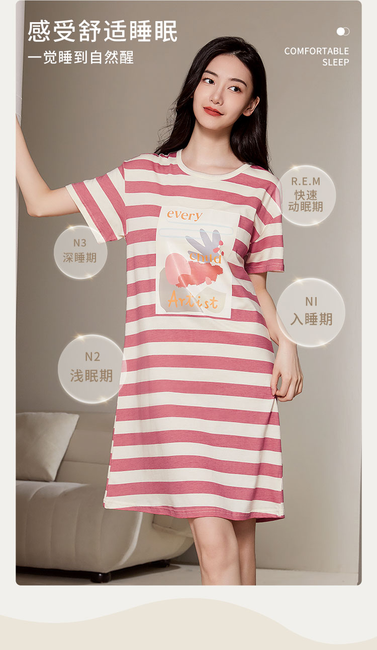 商品名称:【奶油葡萄100%棉】条纹短袖舒适睡衣裙子女纯棉睡裙清爽柔软 119691