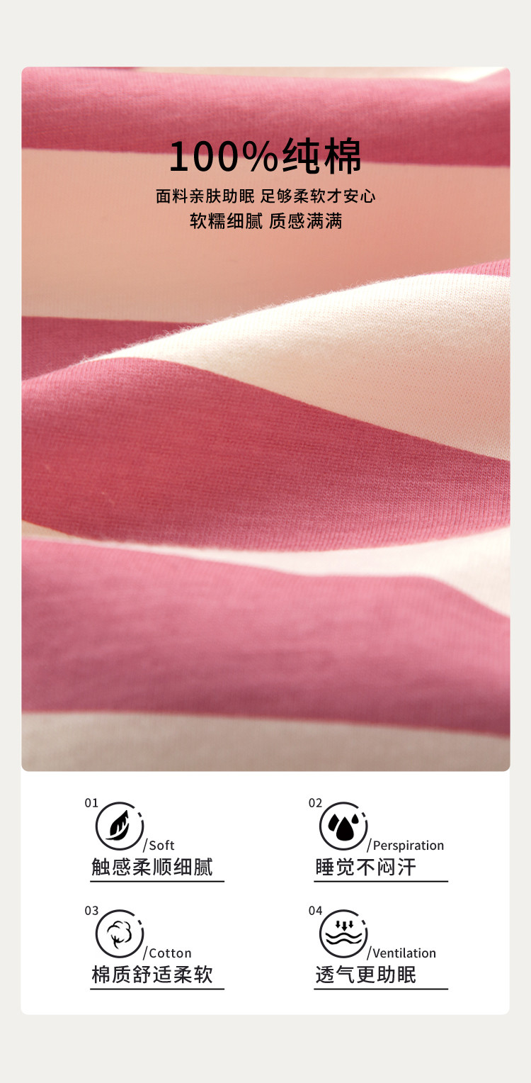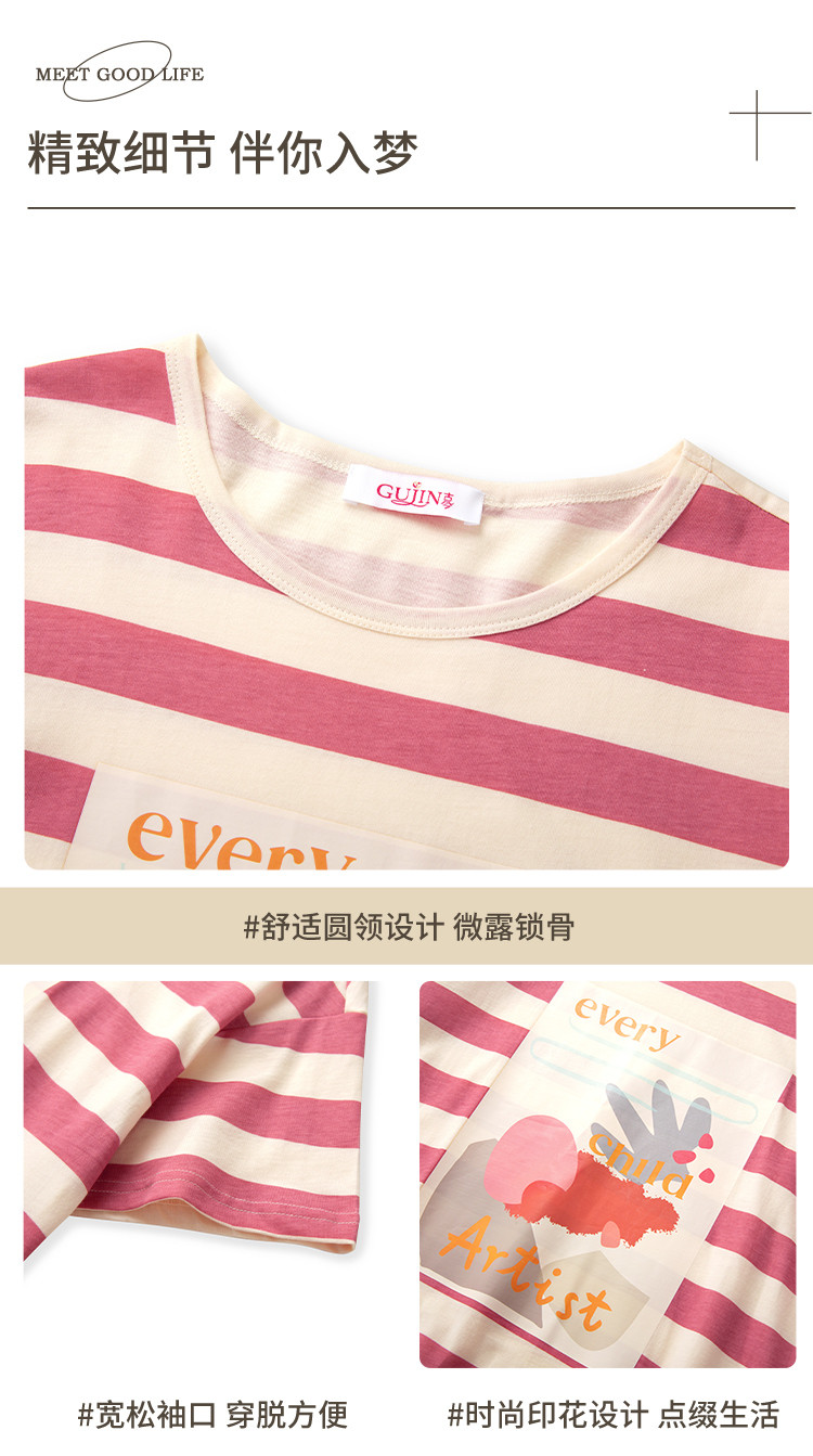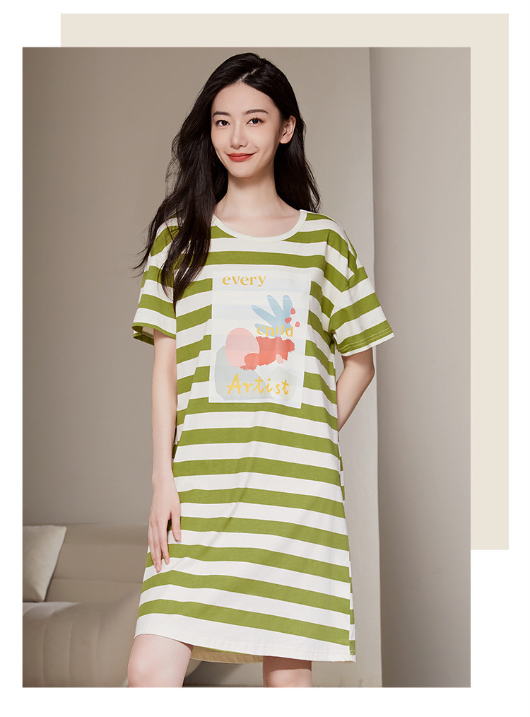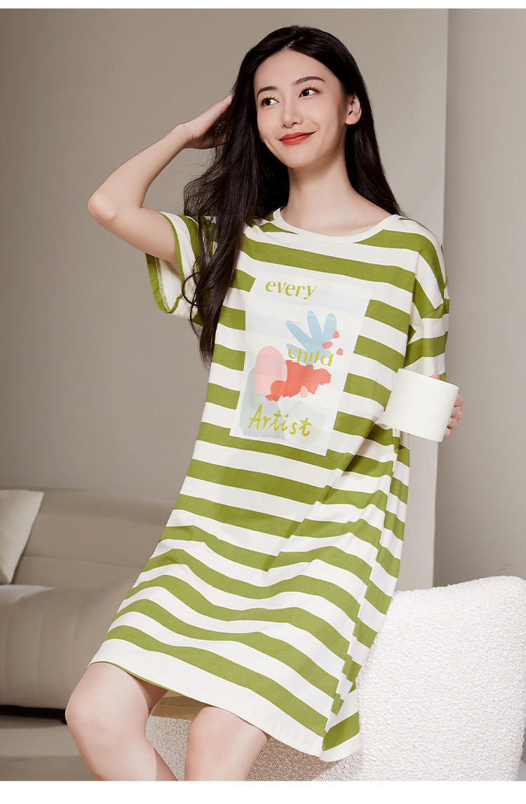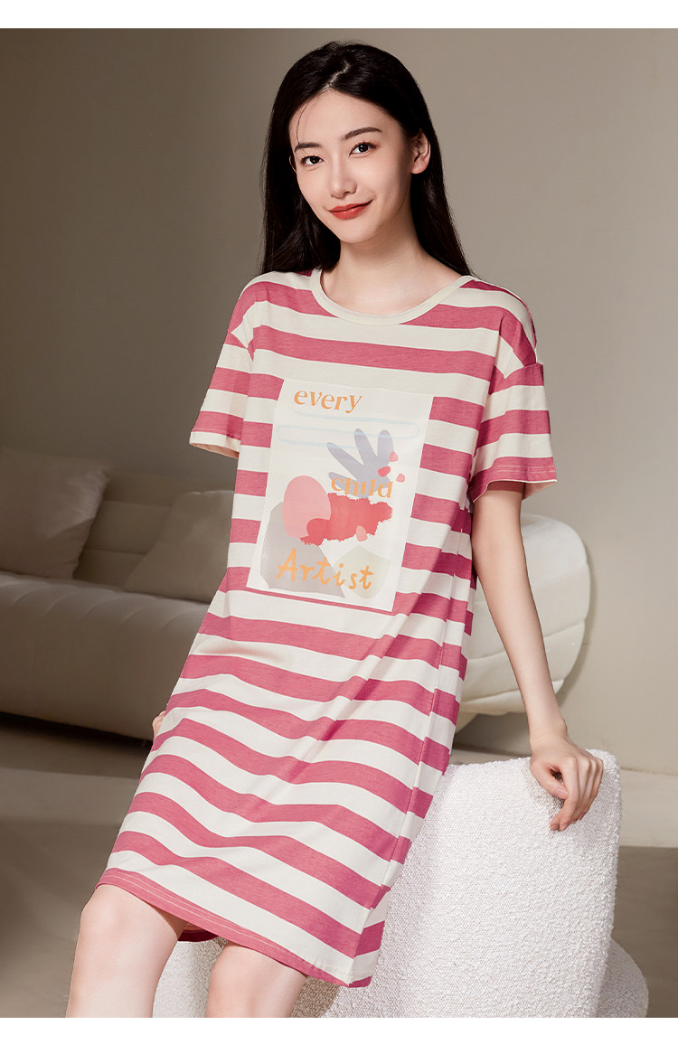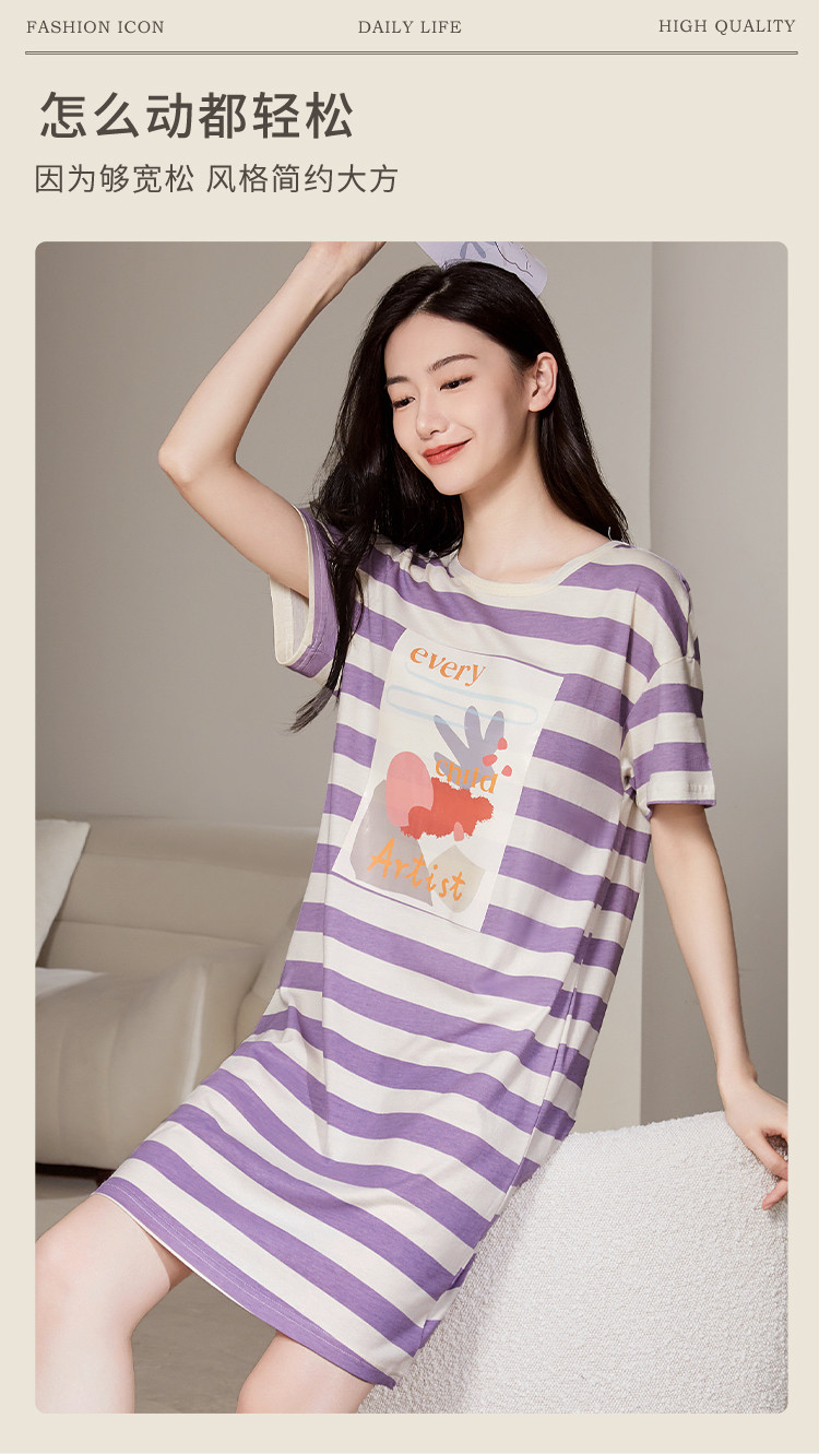 商品名称:【奶油葡萄100%棉】条纹短袖舒适睡衣裙子女纯棉睡裙清爽柔软 119691